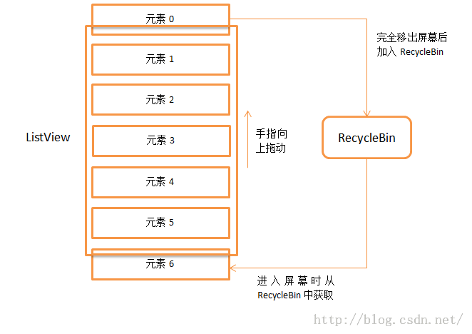 - 上滑时,从下往上依次获取子view,View的top值是不是大于bottom值了,如果大于的话说明子View已经移出了屏幕,同样把它加入到废弃缓存中,并将计数器加1;